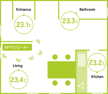 ※建物の性能・仕様・窓の有無・ドアの開け閉めなど、様々な条件により、温熱環境は左右されます。