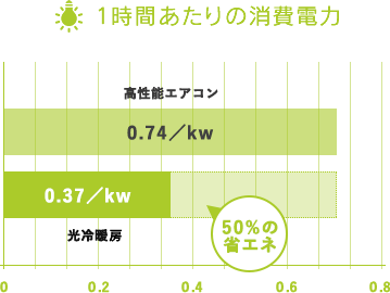 | point③ | 電気消費量はエアコンのおそよ2分の1になります。 |