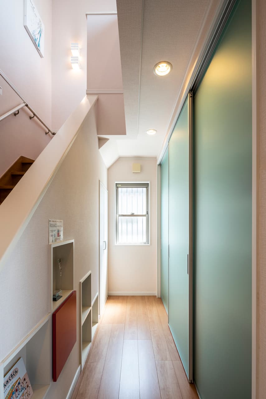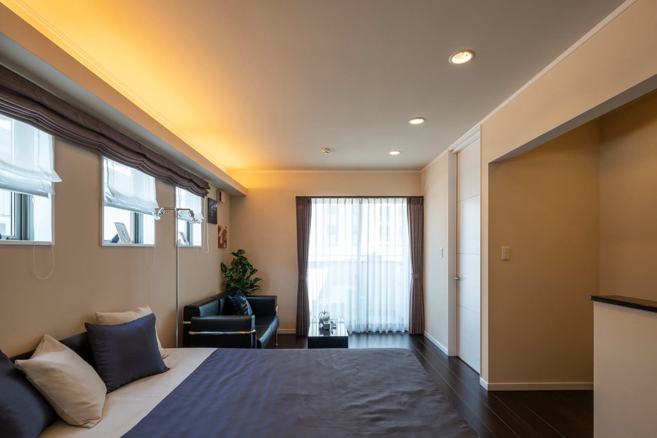 お子様が小さい時は、おもちゃ箱などの収納スペースとして活用し、お子様が寝静まった夜や、大きくなられた後は、照明の効果を生かした雰囲気のあるモダンな和室としてお使いいただけます。